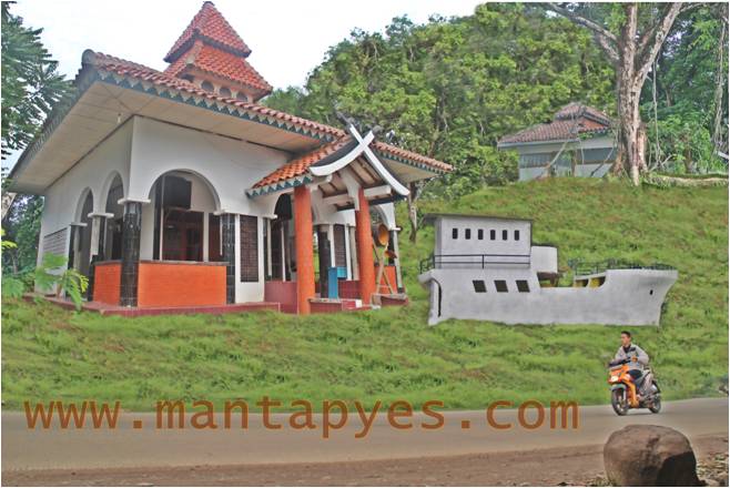 Waktu sudah menginjak shalat Ashar. Usai menjalankan kewajiban aku tuntaskan rasa penasaranku pada bangunan yang berada di puncak bukit, persis di belakang masjid perahu jika kita melihatnya dari pinggir jalan.Ternyata bangunan di bawah pepohonan rindang di atas bukit itu berisakan makam,yang pintunya terkunci.
